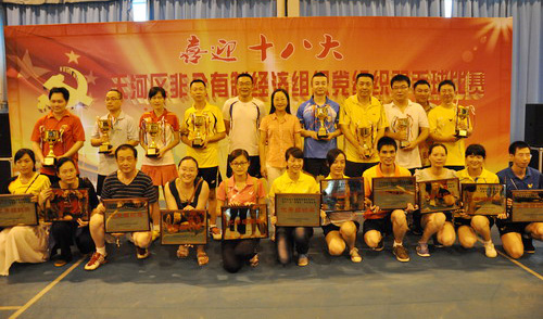 10月28日,由天河區(qū)非公有制經(jīng)濟(jì)組織黨工委舉辦的“喜迎十八大”羽毛球比賽在賽馬場(chǎng)偉盛羽毛球館舉行。我司由王永強(qiáng)、李運(yùn)喜、謝蕓宇、曹乙香、劉鵬、鄒信祥組成的羽毛球代表隊(duì)獲得優(yōu)秀組織獎(jiǎng)。