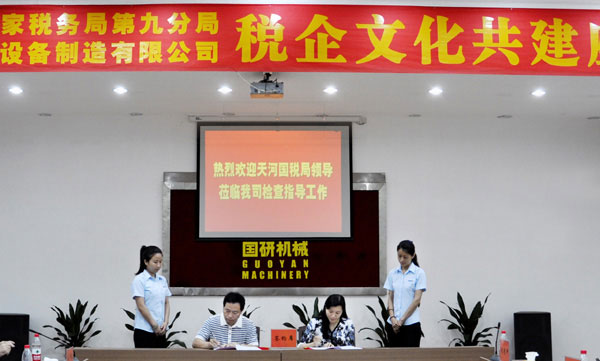 5月28日下午,廣州市天河國稅進出口稅收管理科、天河國稅第九分局和廣州市國研機械設備制造有限公司“稅企文化共建座談會”在國研機械大會議室隆重召開。天河國稅區(qū)局領(lǐng)導黃捷洪紀檢組長、賴建華總經(jīng)濟師和區(qū)局相關(guān)科室、進出口稅收管理科、九分局等領(lǐng)導出席了此次座談會。