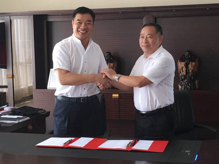 2017年8月5日上午11點,在河北邢臺今麥郎集團總部,國研機械董事長王聲位與今麥郎集團董事長范現國共同簽署了廣州市國研機械設備制造有限公司與今麥郎面品有限公司建立戰略合作伙伴關系的協議。